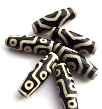 真正的天珠是数千年前由藏民开采出矿石后又经人工研磨而成,其间花纹由喇嘛边念诵经文边用特殊工艺绘制、镶蚀而成,经过开光、加持、供奉,历代相传,称为稀世珍品。
