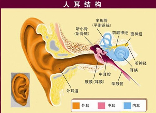 大家都知道我们的耳朵由外耳、中耳、内耳三部分构成。外耳接受外界的声音,并沿着耳道引起鼓膜震动,中耳鼓膜的震动引起锤骨、镫骨和砧骨三块小骨相震动,将声音传到内耳,内耳可产生神经冲动,冲动沿听神经转为神经能,这样声音的信息就传到了大脑。
