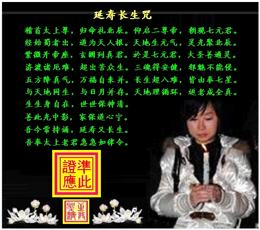 密宗的教徒在修长寿时,念的是“延寿咒“,修炼时,要与观无量寿佛相配合。